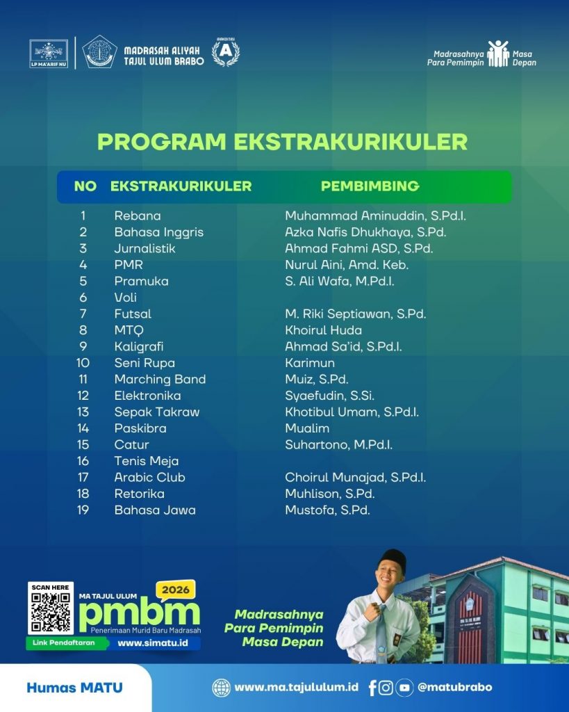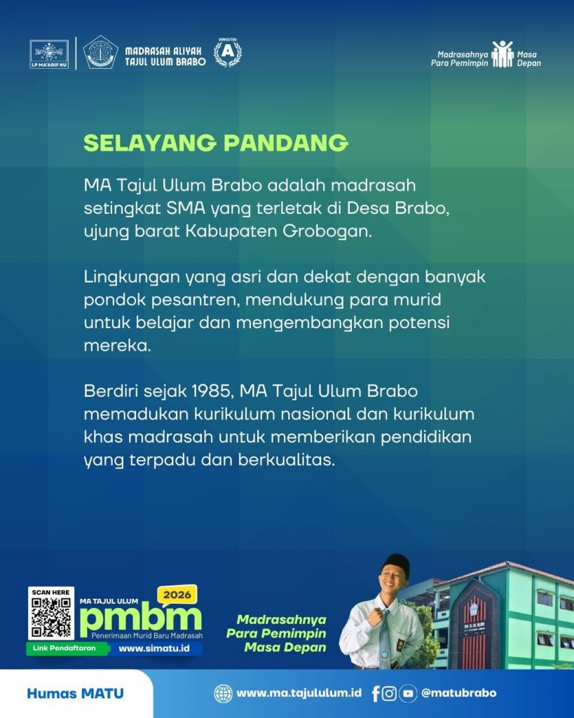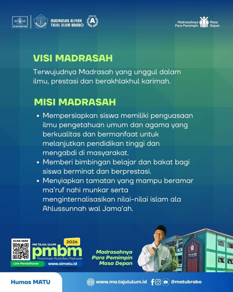 Berikut beberapa informasi penting seputar PMBM MA Tajul Ulum Brabo: